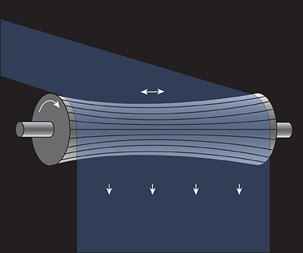 WINertia™ AV Spreader Roll 是通過在 WINertia AV 惰輪的中心加工一個錐度以形成“反向冠”輪廓而製成的。錐形死軸輥在外邊緣形成較大直徑,在輥中心形成較小直徑。這種設計在輥的末端產生了更大的表面速度。結果是幅材張力分佈使幅材從中心向外展開。